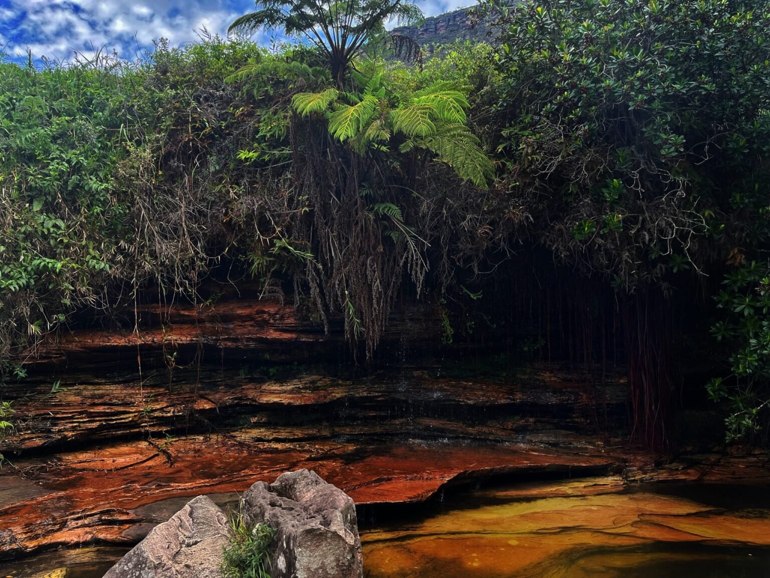 Finalmente si arriva ad Águas Claras, una piscina naturale dalle acque limpide e freschissime, alimentata da una sorgente nascosta tra le rocce. Qui ci si può rinfrescare, immergersi nell’acqua cristallina e pranzare con un pic-nic offerto dall’agenzia, godendo della quiete del luogo e dei giochi di luce sulle acque.