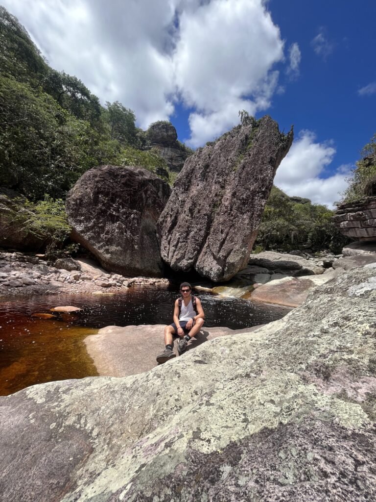 La giornata inizia presto, subito dopo la colazione. Zaino in spalla, ci si avvia verso il sentiero vicino alla pousada, seguendo il letto del fiume Ribeirão, che diventerà compagno di viaggio per molte ore.